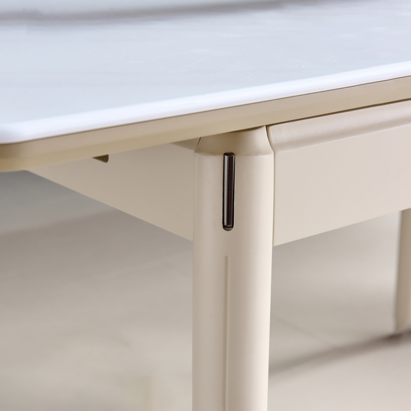 實木 奶油色 微晶石(令面) 餐枱 中間開合 伸縮餐枱