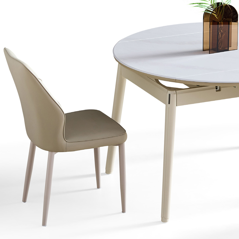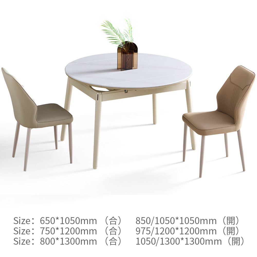 實木 奶油色 微晶石(令面) 餐枱 兩邊開合 伸縮餐枱 圓枱變長形枱