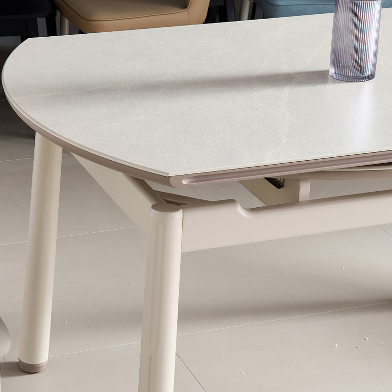 實木 奶油色 微晶石(啞光) 餐枱 兩邊開合 伸縮餐枱 圓枱變長形枱